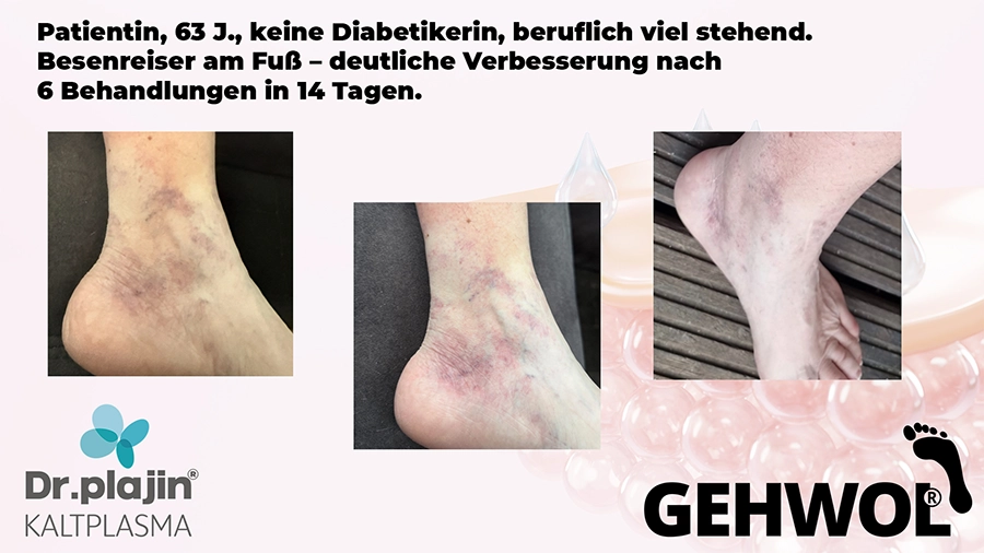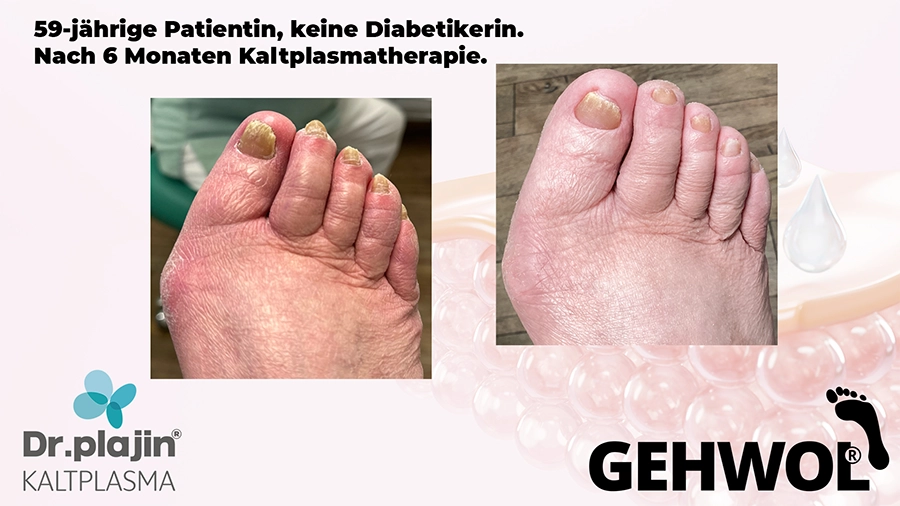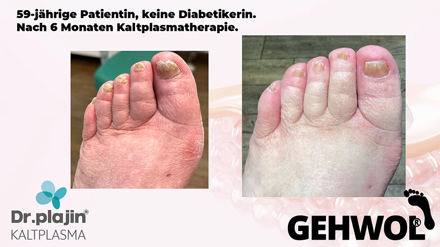 Füße tragen uns unser Leben lang und wir bekommen in unserer Praxis täglich viel zu sehen. Doch von un an werden diabetische Füße, schmerzende Schrunden (Hyperkeratose), spröde Fersen, Neurodermitis oder Nagelpilz (Onychomykose) werden mit Kaltplasma behandelt. Für viele ein unendlicher Leidensweg, und wir wissen, dass wir unseren Kunden viel Erleichterung verschaffen, wenn sie zu uns kommen. Und dann entdecken wir auf einer Messe dieses neue Medizinprodukt von Dr.Plajin und dessen Vorzüge, die uns schier sprachlos machten.
