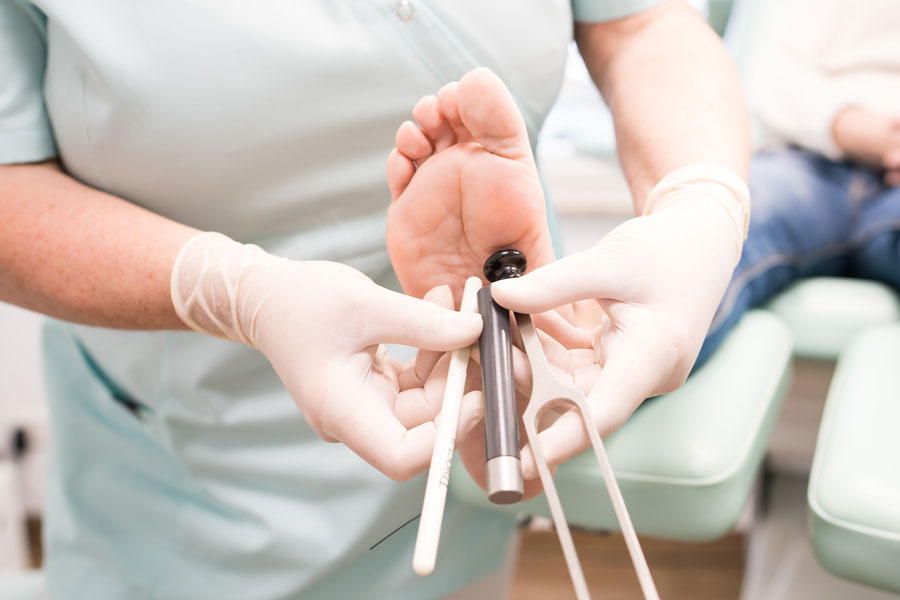 Messung von Fußpulsen /Stimmgabel nach Rydel-Seiffer/ Tiptherm und Monofilament