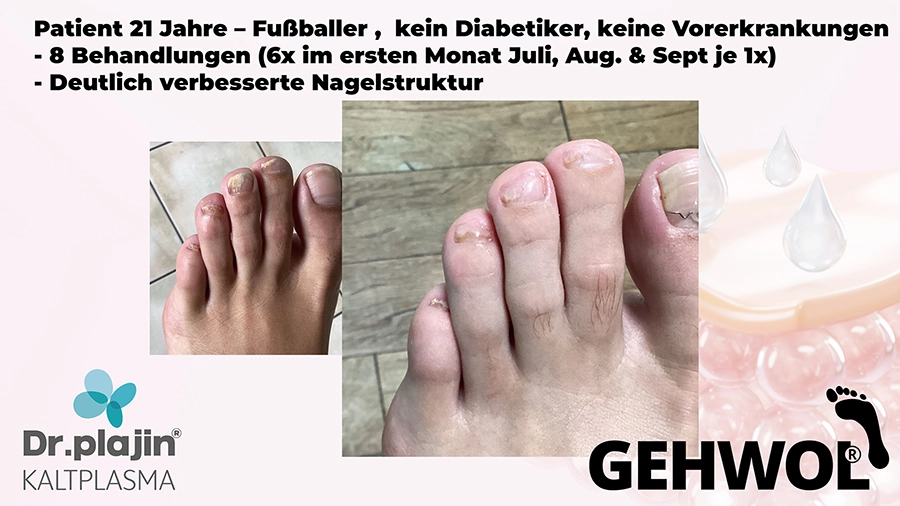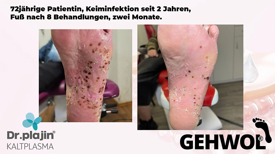 Füße tragen uns unser Leben lang und wir bekommen in unserer Praxis täglich viel zu sehen. Doch von un an werden diabetische Füße, schmerzende Schrunden (Hyperkeratose), spröde Fersen, Neurodermitis oder Nagelpilz (Onychomykose) werden mit Kaltplasma behandelt. Für viele ein unendlicher Leidensweg, und wir wissen, dass wir unseren Kunden viel Erleichterung verschaffen, wenn sie zu uns kommen. Und dann entdecken wir auf einer Messe dieses neue Medizinprodukt von Dr.Plajin und dessen Vorzüge, die uns schier sprachlos machten.